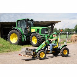 Le kart à pédales s'inspire des fameuses marques de tracteurs Fendt, Claas et John Deere. Les immenses pneus et le pot d'échappement donnent l'impression de conduire un vrai tracteur. Les barres de guidon réglables offrent une excellente tenue de route. Le frein de stationnement intégré permet de garer le véhicule simplement et en toute sécurité.