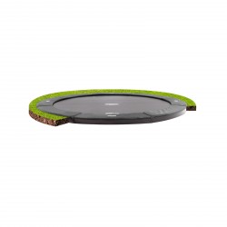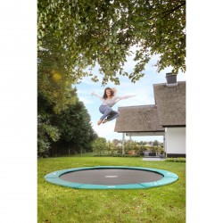 Le nouveau Berg FlatGround Champion est un trampoline enterré haut de gamme. Le trampoline Champion allie la qualité digne de la marque Berg à la technologie innovante Airflow pour garantir un confort de saut maximal. Le FlatGround se trouve au même niveau que le gazon. Ainsi, le trampoline se fait à peine remarquer et son accès est très facile. Le FlatGround Champion est très silencieux grâce à la présence d'une sangle spéciale qui fixe le coussin de protection au trampoline et l'empêche de tressauter. Le couvre-bord extra large en PVC résistant aux intempéries bénéficie d'une longévité maximale. Le cadre breveté facile à monté, s'intègre parfaitement dans le sol.