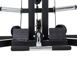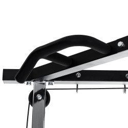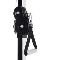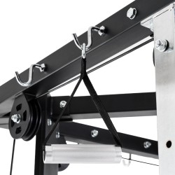 - Appareil de musculation multifonctionnel avec deux poulies réglables en hauteur, un core trainer, une barre de suspension et des accessoires pratiques
