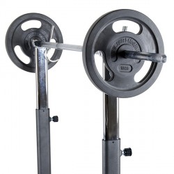 Le Rack à squat Taurus Deluxe vous aide à rendre votre entraînement avec barres de musculation varié et sûr. En ajoutant un banc de musculation, vous pouvez pratiquer des développés couchés par exemple.