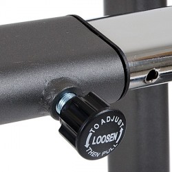 Le Rack à squat Taurus Deluxe est très résistant grâce à son cadre d'acier massif. Le revêtement en poudre n'a pas seulement belle allure, il protège aussi le cadre en garantissant une longue durée de vie. Le rack à squat peut être réglé selon vos préférences : 5 positions différentes en largueur (dimensions intérieures entre 75 et 118 cm) et 9 en hauteur.